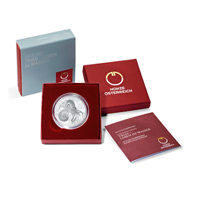 <<< Österreich - 20 EUR Lebendige Urzeit Trias - 18g Silber PP | |