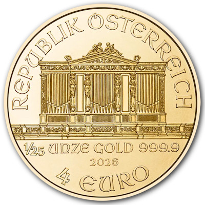 | <<< Österreich - 4 EURO Philharmoniker 2026 - 1/25 Oz Gold | |