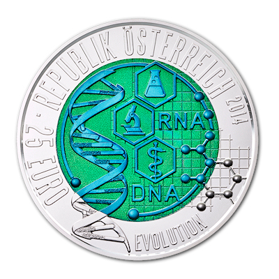 Die 2014er Münze der Niob Silbermünzen von der Münze Österreich widmet sich der Evolution.