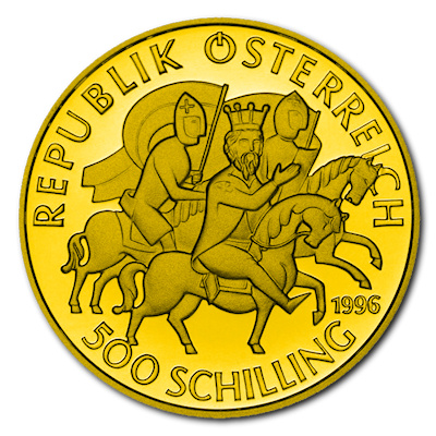 Die von der Münze Österreich verausgabte Goldmünze in der höchsten Prägequalität Polierte Platte stammt aus der Millenium Serie und zeigt Heinrich den II. Die Münze beinhaltet 8g Feingold hat einen Nennwert von 500 Schilling und wurde 1996 verausgabt.