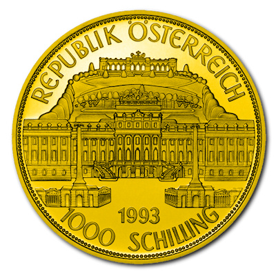 Die von der Münze Österreich verausgabte Goldmünze in der höchsten Prägequalität Polierte Platte stammt aus der Millenium Serie und zeigt Maria Theresia. Die Münze beinhaltet 16g Feingold hat einen Nennwert von 1.000 Schilling und stammt von 1993.