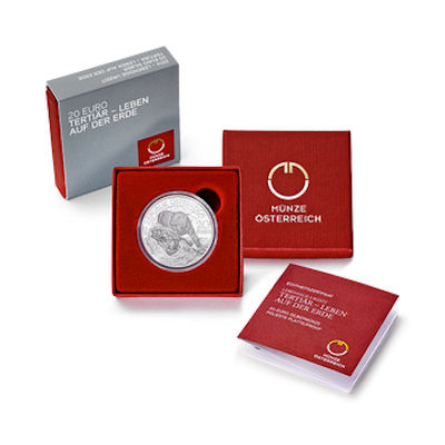 Es handelt sich hier um die 4. Ausgabe aus der Serie Lebendige Urzeit der Münze Österreich. Die Ausgabe widmet sich der Tertiär, kommt in der höchsten Prägequalität Polierte Platte und ist auf 50.000 Stück weltweit limitiert.