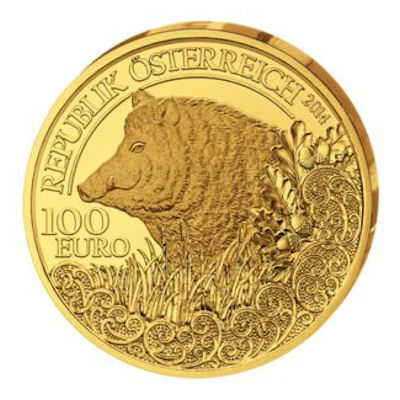 <<< Österreich - 100 EUR Wildtiere Das Wildschwein 2014 - 1/2 Oz Gold | |