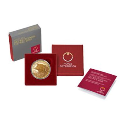 Das Wildschwein ist die 2. Ausgabe der neuen 100 Euro Goldserie der Münze Österreich. Die Münze kommt in polierter Platte mit Echtheitszertifikat und Original-Etui. Wie üblich für österreichische Münzprodukte besticht die Ausgabe mit viel Detail und filigranen Einzelheiten.