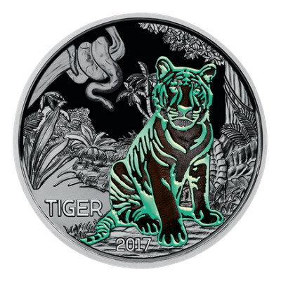 Es handelt sich hier um die 2. Ausgabe dieser beliebten und stark nachgefragten Serie und zeigt den Tiger, wunderschön coloriert und natürlich mit Glow-in-the-Dark Technologie. Die Münze war innerhalb kürzester Zeit bei der Münze Österreich ausverkauft und brachte fast den Server zum Erliegen durch die hohen Zugriffe.