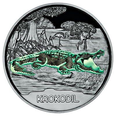 Es handelt sich hier um die 3. Ausgabe dieser beliebten und stark nachgefragten Serie und zeigt das Krokodil, wunderschön coloriert und natürlich mit Glow-in-the-Dark Technologie. Die Münze war innerhalb kürzester Zeit bei der Münze Österreich ausverkauft und brachte fast den Server zum Erliegen durch die hohen Zugriffe.