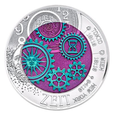 In unserer schnelllebigen Epoche: eine Münze von zeitlosem Wert – die Silber-Niob-Münze zum Thema Zeit.