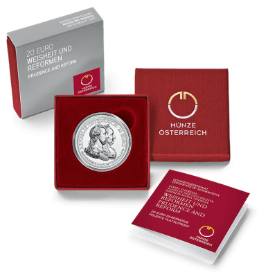 Zum großen Jubiläum einer beeindruckenden Frau präsentiert die Münze Österreich eine vierteilige Serie. Von der jungen, mutigen Regentin bis zur weisen Reformerin zeichnen die vier 20-Euro-Münzen charakterisierende Züge Maria Theresias nach. Die Silbermünzen sind inspiriert von historischen Medaillen, die in dieser Zeit geprägt wurden und überraschen mit für Münzen unüblich hohen Reliefs sowie mattierten Oberflächen, die damals ein typisches Gestaltungsmerkmal waren. In der höchsten Prägequalität Polierte Platte/Proof wird das Leben Maria Theresias in dieser besonderen Form geschichtsbewusst in Szene gesetzt.