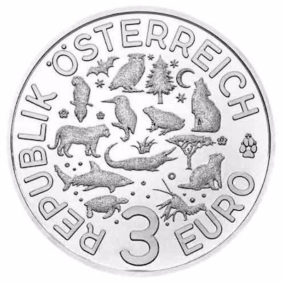 Die neue Serie der Münze Österreich portraitiert zwölf Tiere aus aller Welt. Und das auf sehr ungewöhnliche Art, denn erstens beträgt der Nennwert der Tier-Taler 3 Euro; und zweitens werden die Tiere nachts gleichsam aktiv: Sie leuchten im Dunkeln nach.