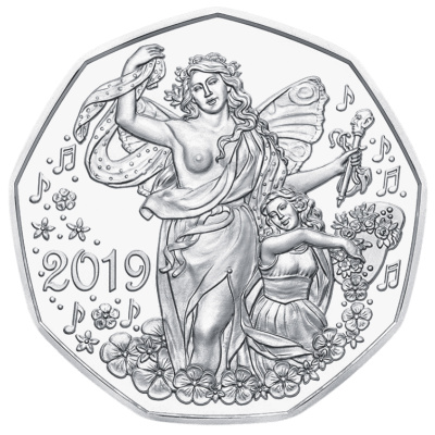 Fröhlichkeit im Überfluss, das möge die Neujahrsmünze bescheren. Was wäre besser als Musik geeignet, die Lebenslust zu steigern! – 2019 ist es 150 Jahre her, dass die Wiener Staatsoper zum ersten Mal ihre Besucher entzückt hat. – Der Glücksbringer verhelfe seinem Besitzer im kommenden Jahr zum Wertvollsten, das es gibt: Lebensfreude.