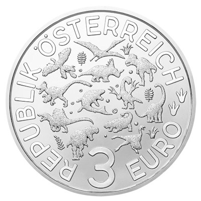 <<< Österreich - 3 Euro Dino Taler Mosasaurus 2020 - Münze | |