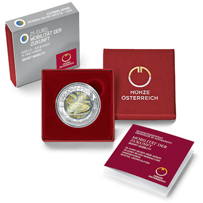 <<< Österreich - 25 Euro Niob Serie Mobilität der Zukunft 2021 - Silber-Niob Münze | |