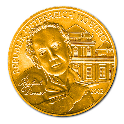 Die Münze Österreich verausgabt seit 2002 100 EUR Goldmünzen die jährlich erscheinen und zu unterschiedlichen Themengebieten gehören. So gab es im Jahr 2002 und 2003 die Ausgaben Bildhauerei und Malerei zur Reihe Kunstschätze Österreichs. Die Münzen sind in der höchsten Prägequalität Polierte Platte produziert und wurden mit Original-Etui der Münze Österreich sowie Echtheitszertifikat ausgeliefert. Die Limitierung pro Ausgabe lag bei nur 30.000 Stück. | |