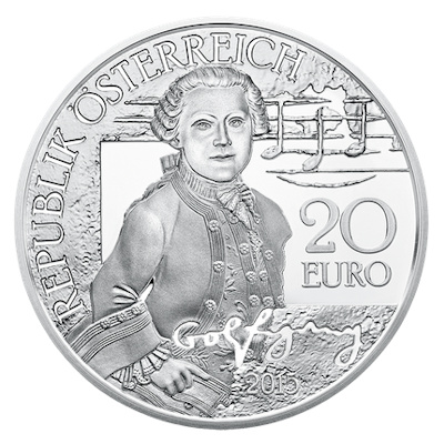 Die erste Münze der dreiteiligen Mozart-Serie widmet sich Wolferls Kindheit, die am 27. Januar 1756 in Salzburg begann, also vor mehr als zweieinhalb Jahrhunderten. Schon bald wurde offenbar, dass ein Wunderkind in die Welt gekommen war, eines, das ganz in der Welt der Musik lebte; und bis auf den heutigen Tag lebt die Welt der Musik von ihm. – Ein sehr besonderes Kind, eine sehr besondere Münze. Limitiert auf 50.000 Stück. |