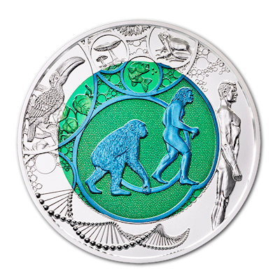 Die 2014er Münze der Niob Silbermünzen von der Münze Österreich widmet sich der Evolution. |