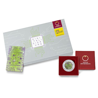 Die neueste NIOB Ausgabe der Münze Österreich widmet sich der Digitalisierung. Die Auslieferung dieser Silbermünze mit NIOB Kern erfolgt im Original-Etui der Münze Österreich mit nummeriertem Echtheitszertifikat. |