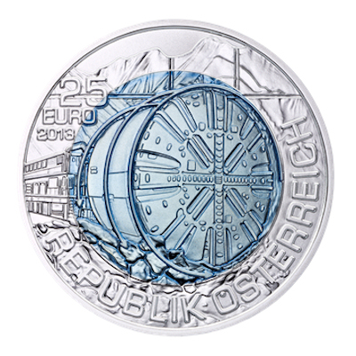 Österreich - 25 Euro Niob Serie Tunnelbau 2013 - Silber-Niob Münze | ||