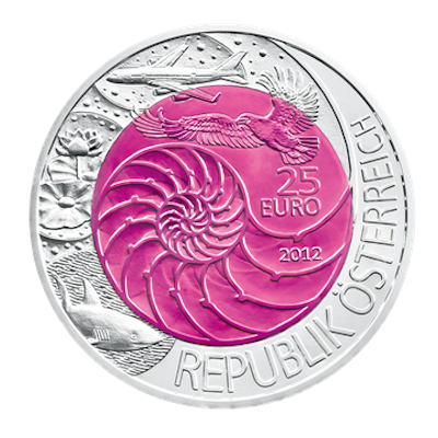 Die 2012er Ausgabe der wunderschönen Niob Silbermünzen von der Münze Österreich widmet sich der Bionik. |