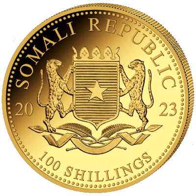 <<< Somalia - 100 Shillings Elefant 2023 - 1/10 Oz Gold | |