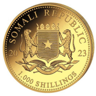 <<< Somalia - 1000 Shillings African Wildlife Leopard 2023 - 1 Oz Gold | |