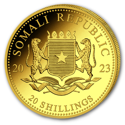 <<< Somalia - 20 Shillings Leopard 2023 - 0,5g Gold | |