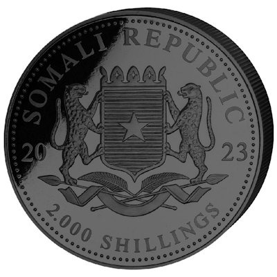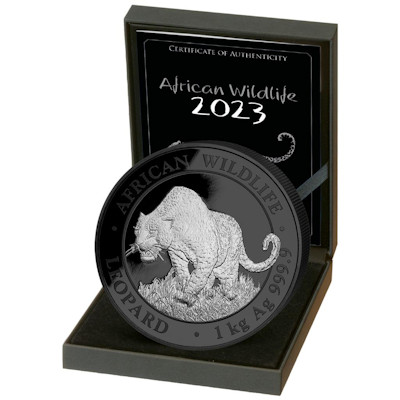 <<< Somalia - African Wildlife Leopard BLACK 2023 - 1 KG Silber Black Premium Edition | |