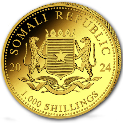 <<< Somalia - 1000 Shillings African Wildlife Leopard 2024 - 1 Oz Gold | |