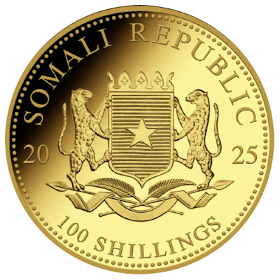 <<< Somalia - 100 Shillings Elefant 2025 - 1/10 Oz Gold | |
