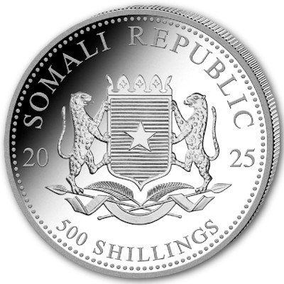 Technische Daten: Ausgabeland: Somalia Prägeanstalt: Ausgabejahr: 2025 Nennwert: 500 Shilling Material: Silber Gewicht: 155,51500g Durchmesser: 65,00 mm Prägequalität: Stempelglanz Verpackung: Einzeln gekapselt |