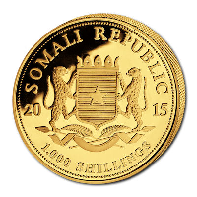 Technische Daten: Ausgabeland: Somalia Prägeanstalt: Diverse Ausgabejahr: 2015 Nennwert: 1.000 Shillings Material: Gold Gewicht: 31,10300g Durchmesser: 39,00 mm Prägequalität: Stempelglanz Verpackung: Gekapselt |