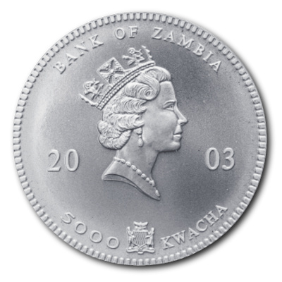 Technische Daten: Ausgabeland: Somalia Prägeanstalt: Ausgabejahr: 2003 Nennwert: 5000 Kwacha Material: Silber Gewicht: 31,10300g Durchmesser: 38,70 mm Prägequalität: Stempelglanz Verpackung: Gekapselt |