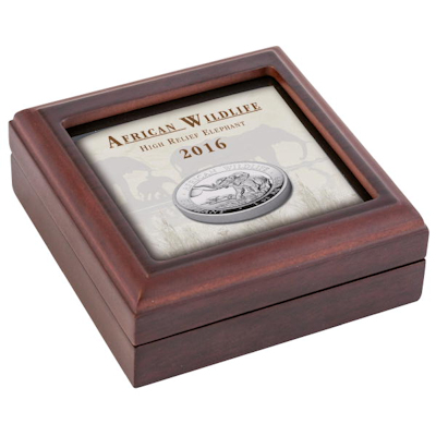 Die 2013 erstmals erschienene HighRelief Ausgabe des African Wildlife Elefanten war ein voller Erfolg. Die geringe Auflage von nur 1.000 Stück war innerhalb kürzester Zeit ausverkauft. Die Ausgabe des Jahres 2016 wird ebenfalls nur 1.000 Mal geprägt und dürfte ähnlich schnell ausverkauft sein. Ein echtes Muss für jeden Sammlerfreund dieser Serie!