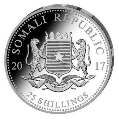Technische Daten: Ausgabeland: Somalia Prägeanstalt: Ausgabejahr: 2017 Nennwert: 25 Shilling Material: Silber Gewicht: 7,77575g Durchmesser: 26,00 mm Prägequalität: Stempelglanz Verpackung: Zu 25 Stück in Tubes/Tüte oder einzeln in Münztaschen |