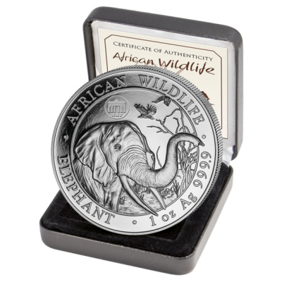 Seit 2004 wird der Wildlife Elefant aus Somalia verausgabt. Ursprünglich war diese Serie als Sammlermünzen Serie angelegt und so gab es die ersten Ausgaben nur in geringen Stückzahlen und gekapselt. Mit der Ausgabe 2009 wurde die Münze dann als Anlagemünze in großen Stückzahlen produziert und wird zu Tubes mit 20 Stück verpackt ausgeliefert. Neben der 1 Oz Silbermünze wurden in den letzten Jahren auch weitere Ausgaben in Gold (5 Oz Polierte Platte, 1 Oz Anlagemünze, 1/25 Oz und 1/50 Oz Anlagemünze) sowie diverse Sammlerausgaben ins Silber (Coloriert, vergoldet, HighRelief, etc) verausgabt. Die Serie erfreut sich steigender Beliebtheit und für ältere Ausgaben werden deutliche Sammleraufschläge gezahlt.