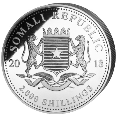 Technische Daten: Ausgabeland: Somalia Prägeanstalt: Ausgabejahr: 2018 Nennwert: 2.000 Shilling Material: Silber Gewicht: 1.000,00000g Durchmesser: 100,00 mm Auflage: 500 Stück Prägequalität: Stempelglanz Verpackung: Einzeln gekapselt im Original-Jute-Sack |