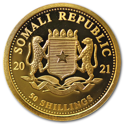 Technische Daten: Ausgabeland: Somalia Prägeanstalt: Diverse Ausgabejahr: 2021 Nennwert: 50 Shillings Material: Gold Gewicht: 1,24412g Durchmesser: 14,00 mm Auflage: 5.000 Stück Prägequalität: Polierte Platte Verpackung: Gekapselt |
