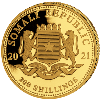 Technische Daten: Ausgabeland: Somalia Prägeanstalt: Diverse Ausgabejahr: 2021 Nennwert: 200 Shillings Material: Gold Gewicht: 7,77600g Durchmesser: 26,00 mm Prägequalität: Stempelglanz Verpackung: Gekapselt |