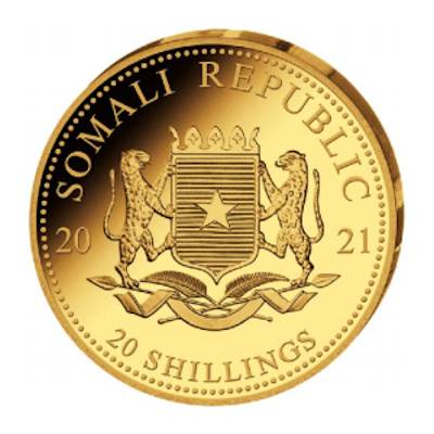 Technische Daten: Ausgabeland: Somalia Prägeanstalt: Diverse Ausgabejahr: 2021 Nennwert: 20 Shillings Material: Gold Gewicht: 0,50000g Durchmesser: 11,00 mm Auflage: 5.000 Stück Prägequalität: Polierte Platte Verpackung: Gekapselt |