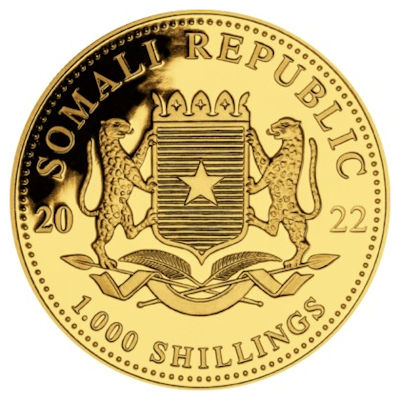 <<< Somalia - 1000 Shillings Elefant 2022 - 1 Oz Gold | |