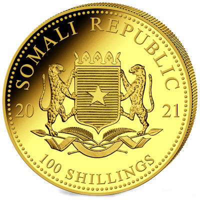 <<< Somalia - 100 Shillings Elefant 2022 - 1/10 Oz Gold | |