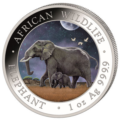 Seit 2004 wird der Wildlife Elefant aus Somalia verausgabt. Ursprünglich war diese Serie als Sammlermünzen Serie angelegt und so gab es die ersten Ausgaben nur in geringen Stückzahlen und gekapselt. Mit der Ausgabe 2009 wurde die Münze dann als Anlagemünze in großen Stückzahlen produziert und wird zu Tubes mit 20 Stück verpackt ausgeliefert. Neben der 1 Oz Silbermünze wurden in den letzten Jahren auch weitere Ausgaben in Gold (5 Oz Polierte Platte, 1 Oz Anlagemünze, 1/25 Oz und 1/50 Oz Anlagemünze) sowie diverse Sammlerausgaben ins Silber (Coloriert, vergoldet, HighRelief, etc) verausgabt. Die Serie erfreut sich steigender Beliebtheit und für ältere Ausgaben werden deutliche Sammleraufschläge gezahlt.