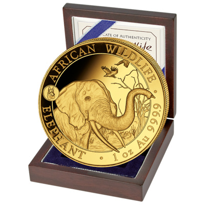 Seit 2004 wird der Wildlife Elefant aus Somalia verausgabt. Ursprünglich war diese Serie als Sammlermünzen Serie angelegt und so gab es die ersten Ausgaben nur in geringen Stückzahlen und gekapselt. Mit der Ausgabe 2009 wurde die Münze dann als Anlagemünze in großen Stückzahlen produziert und wird zu Tubes mit 20 Stück verpackt ausgeliefert. Neben der 1 Oz Silbermünze wurden in den letzten Jahren auch weitere Ausgaben in Gold (5 Oz Polierte Platte, 1 Oz Anlagemünze, 1/25 Oz und 1/50 Oz Anlagemünze) sowie diverse Sammlerausgaben ins Silber (Coloriert, vergoldet, HighRelief, etc) verausgabt. Die Serie erfreut sich steigender Beliebtheit und für ältere Ausgaben werden deutliche Sammleraufschläge gezahlt.