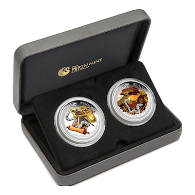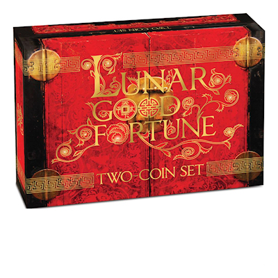 Seit 2013 wird dieses Lunar Set Wealth & Wisdom aus Tuvalu verausgabt, geprägt von der Perth Mint Australia. Das Set beinhaltet jeweils 2 * 1 Oz Feinsilber hochwertig coloriert und steht für Reichtum und Weisheit