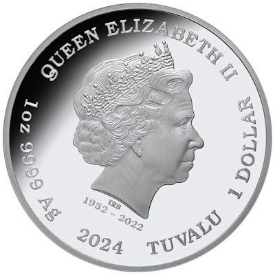 Technische Daten: Ausgabeland: Tuvalu Prägeanstalt: The PerthMint Australia Ausgabejahr: 2024 Nennwert: 1 TVD Material: Silber Gewicht: 31,10300g Durchmesser: 40,90 mm Auflage: 2.500 Stück Prägequalität: Polierte Platte, coloriert Verpackung: Gekapselt im Original-Etui und Echtheitszertifikat |