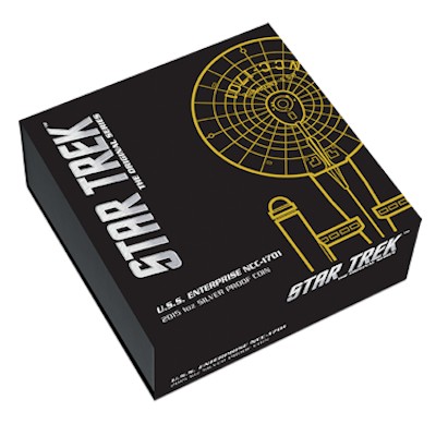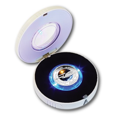 2015 startet die Perth Mint Australia eine Münzserie die sich dem großen Star Trek Universum widmet. Den Anfang machen 2 Ausgaben James T. Kirk und die U.S.S. Enterprise die sowohl einzeln, als auch in einem 2er Set erhältlich sind. Die Umverpackung sowie die Etuis sind durch Star Trek inspiriert, so zeigt das 2er Set einen Transporter. Das Set ist dabei lediglich auf 1.500 Stück weltweit limitiert, die Einzelausgaben auf jeweils 5.000 Stück.