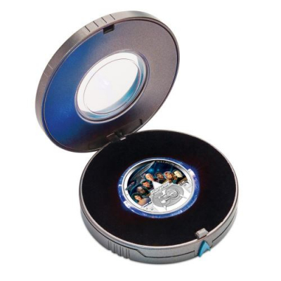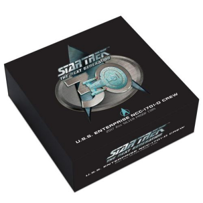 Zum 30. Jubiläum von Star Trek The Next Generation TNG legt die PerthMint nochmals nach und bringt diese Jubiläumsausgabe mit der gesamten Führungscrew der USS Enterprise auf 2 Oz Feinsilber verewigt. Die Ausgabe ist nicht nur wunderschön im Star Trek Look gestaltet, sondern auch in höchster Prägequalität Polierte Platte geprägt und aufwendig coloriert worden. Die Auslieferung erfolgt im serienspezifischen Umkarton, einem Etui in Star Trek Optik und einem nummeriertem Echtheitszertifikat. Die Ausgabe ist auf weltweit nur 3.000 Stück(!!!) limitiert. Besonderheit: In das Etui ist eine Leuchtdiode eingearbeitet die die Münze von hinten beleuchtet sobald das Etui geöffnet wird.