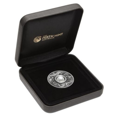 Diese ganz besondere Silbermünze im chinesischen Stil mit dem Titel Dragon & Pearl (Drache und Perle) zeigt als Motiv Drachen und im Kern der Münze ist eine echte Perle eingearbeitet, die zudem drehbar ist. Die Münze besteht aus 1 Oz Feinsilber und ist mit Antik Finish veredelt. Sie ist auf nur 3.000 Stück weltweit streng limitiert. Die Auslieferung erfolgt im Original-Etui mit Umverpackung und nummeriertem Echtheitszertifikat. Die Ausgabe wurde bereits bei der Ausgabe zugeteilt, so dass wir nur eine begrenzte Menge dieser wunderschönen Ausgabe zur Verfügung haben.