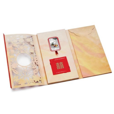 Geprägt als Münzbarren hat diese Ausgabe das Thema chinesische Hochzeit / Chinese Wedding zum Motiv. Die Münze besteht aus 1 Oz Feinsilber, geprägt in der höchsten Prägequalität Polierte Platte sowie aufwendig coloriert. Die Auslieferung erfolgt in Geschenkverpackung mit Echtheitszertifikat.