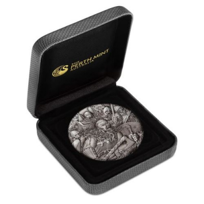 Diese 3-teilige Serie widmet sich der Kriegsführung (Warfare) und zeigt auf jeweils 2 Oz Feinsilber detailreiche Motive in Antik Finish veredelt. Von jeder Ausgabe werden maximal 2.000 Stück weltweit verausgabt. Die Auslieferung erfolgt im Original-Etui mit serienspezifischer Umverpackung und nummeriertem Echtheitszertifikat. Als besonderes Zubehör ist ebenfalls eine 3D-Brille enthalten mit der eine 360 Grad Ansicht der Schlachtszene möglich ist!