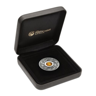 Diese in Antik Finish gefertige Silbermünze hat in der Mitte einen Gelben Topaz der sich rotieren läßt. Die Münze besteht aus 1 Oz Feinsilber und ist auf nur 3.000 Stück weltweit streng limitiert. Die Auslieferung erfolgt im Original-Etui mit Umverpackung und nummeriertem Echtheitszertifikat.